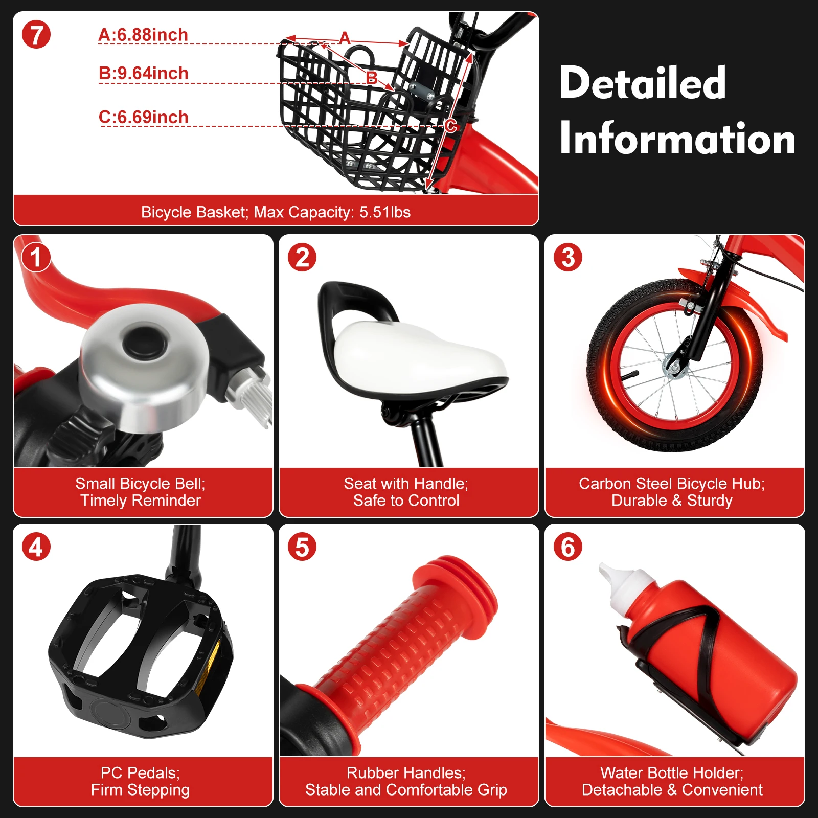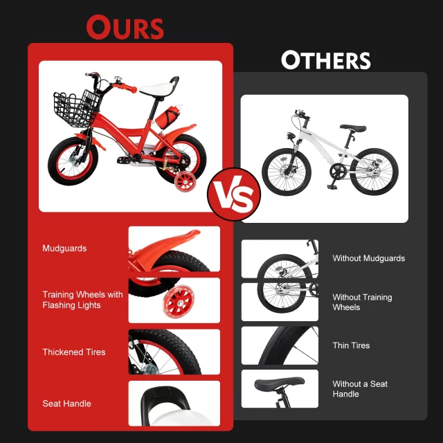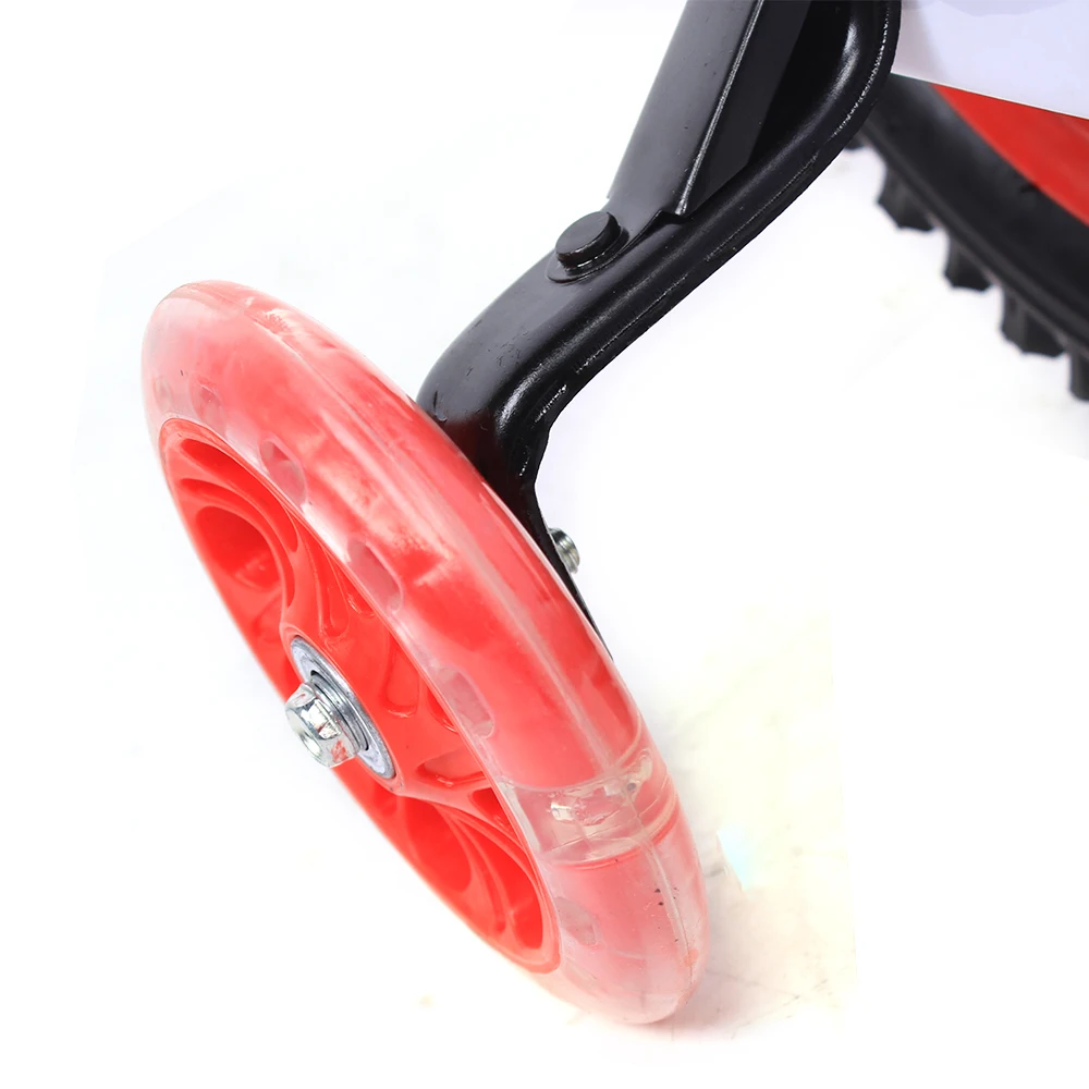 Simple and Eye-catching: The modern and classic design with red and black color makes it undeniably eye-catching in a crowd. The two training wheels have flashing lights designed without external electricity, which can make them shine at night when riding.