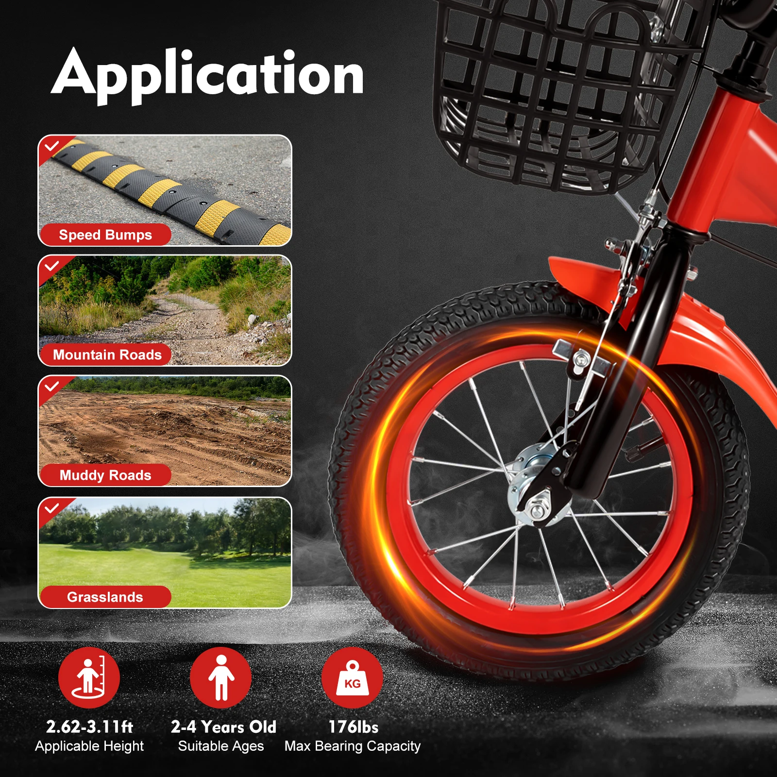 Stable Cycling: Resilient, shock-absorbing rubber tires and 2 training wheels with flashing lights that form a stabilizing triangle structure can provide a more stable riding experience even on mud, sand, and mountain roads.