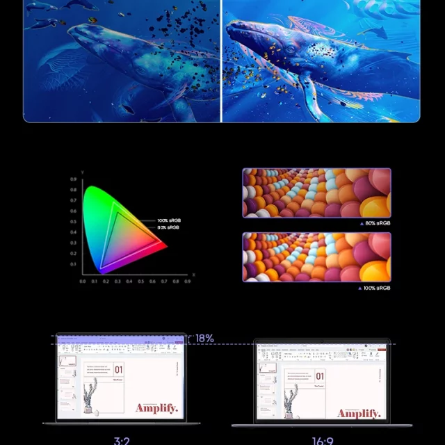 The ultraslim bezel display: Just 5.8mm thin at the sides for a near-borderless experience. The 2K display with a 100% sRGB color gamut enables crisp, vibrant details. And the 3:2 aspect ratio allows for more vision.