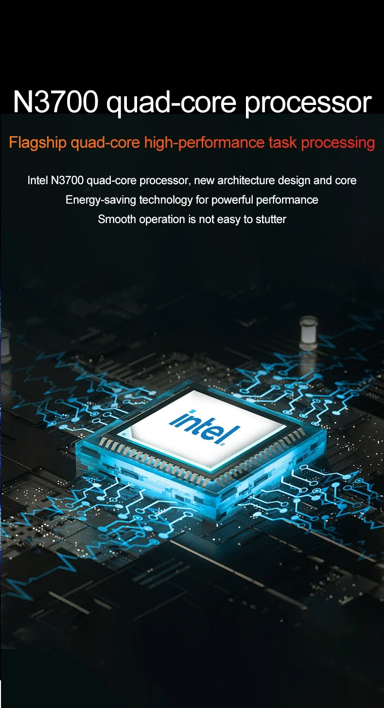 3) Intel N3700 quad-core quad-thread processor up to 1.6GHz,
